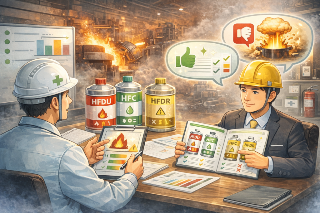 製鋼設備の火災、化学物質等のリスクアセスメントを進める中、製鉄設備に精通した潤滑のプロならではの知見で、 様々な種類の難燃性作動油のメリット、デメリットを説明して頂き、最適な製品を提案頂きました。